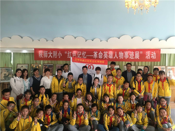 为弘扬民族精神,传承红色文化基因,西安市曲江红色记忆博物馆于2018年4月17日在陕师大附小举办了红色教育共建单位揭牌仪式,参加此次揭牌仪式的领导有陕师大附小副校长高丽、王林波,行政处主任马杰、王璐,曲江红色记忆博物馆宣教部主任郝海娥等。这次红色教育基地的共建,将进一步推进红色教育的传承和发扬,真正将习近平总书记“把理想信念的火种、红色传统的基因一代代传下去,让革命事业薪火相传、血脉永续”的指示精神落到实处。